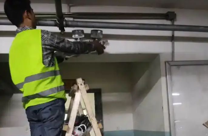 (2)啟動(dòng)一個(gè)噴頭或0.94-1.5L/S的流量從末端的試水裝置中排出水,水流指示器、壓力開關(guān)、水力警鈴、消防泵應(yīng)及時(shí)動(dòng)作并發(fā)出相應(yīng)信號。